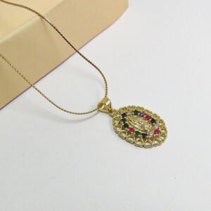 Material acero bañado en oro, con zircones,cad largo 45 cm